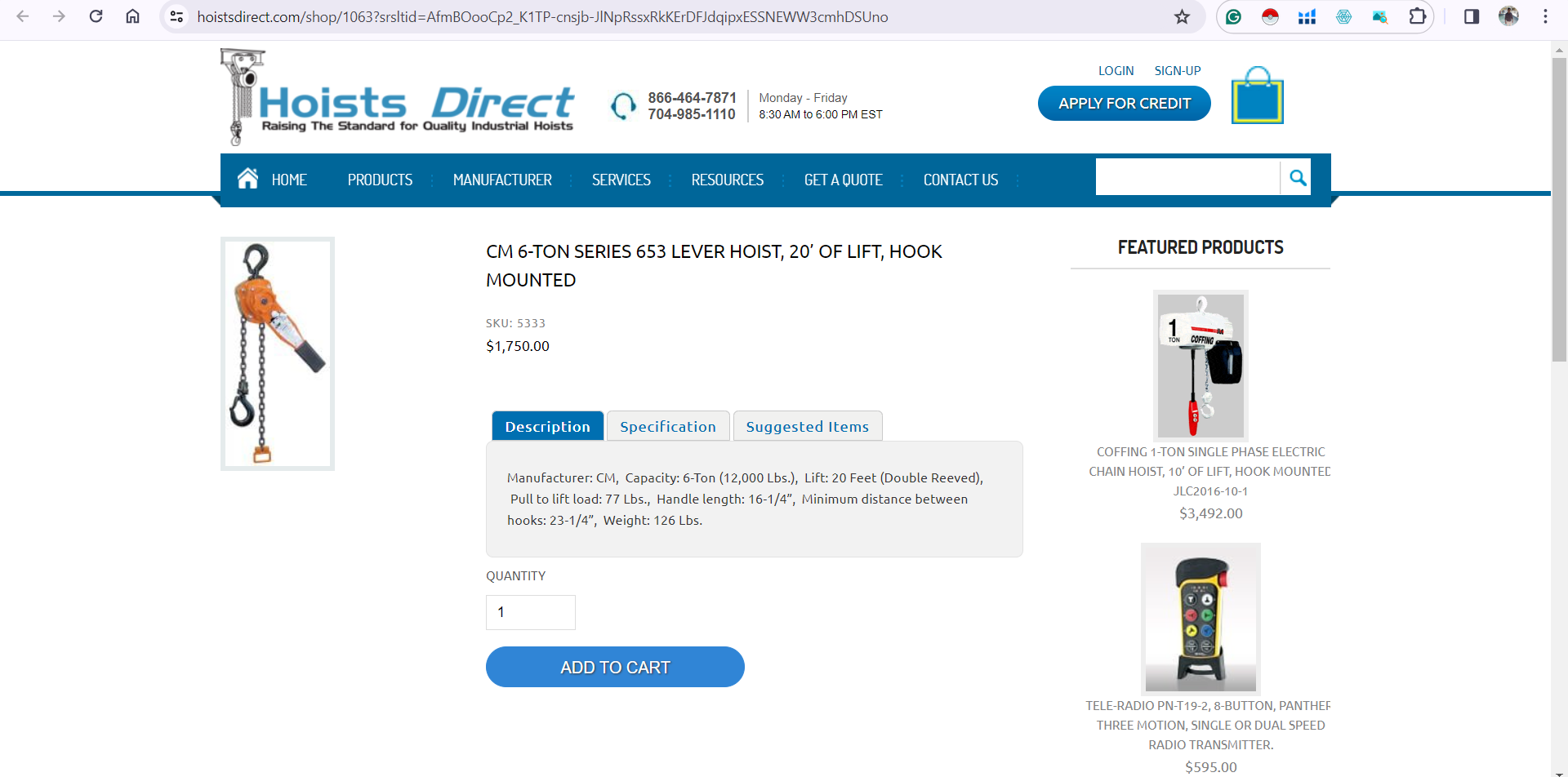 CM 6 Ton Lever Hoist