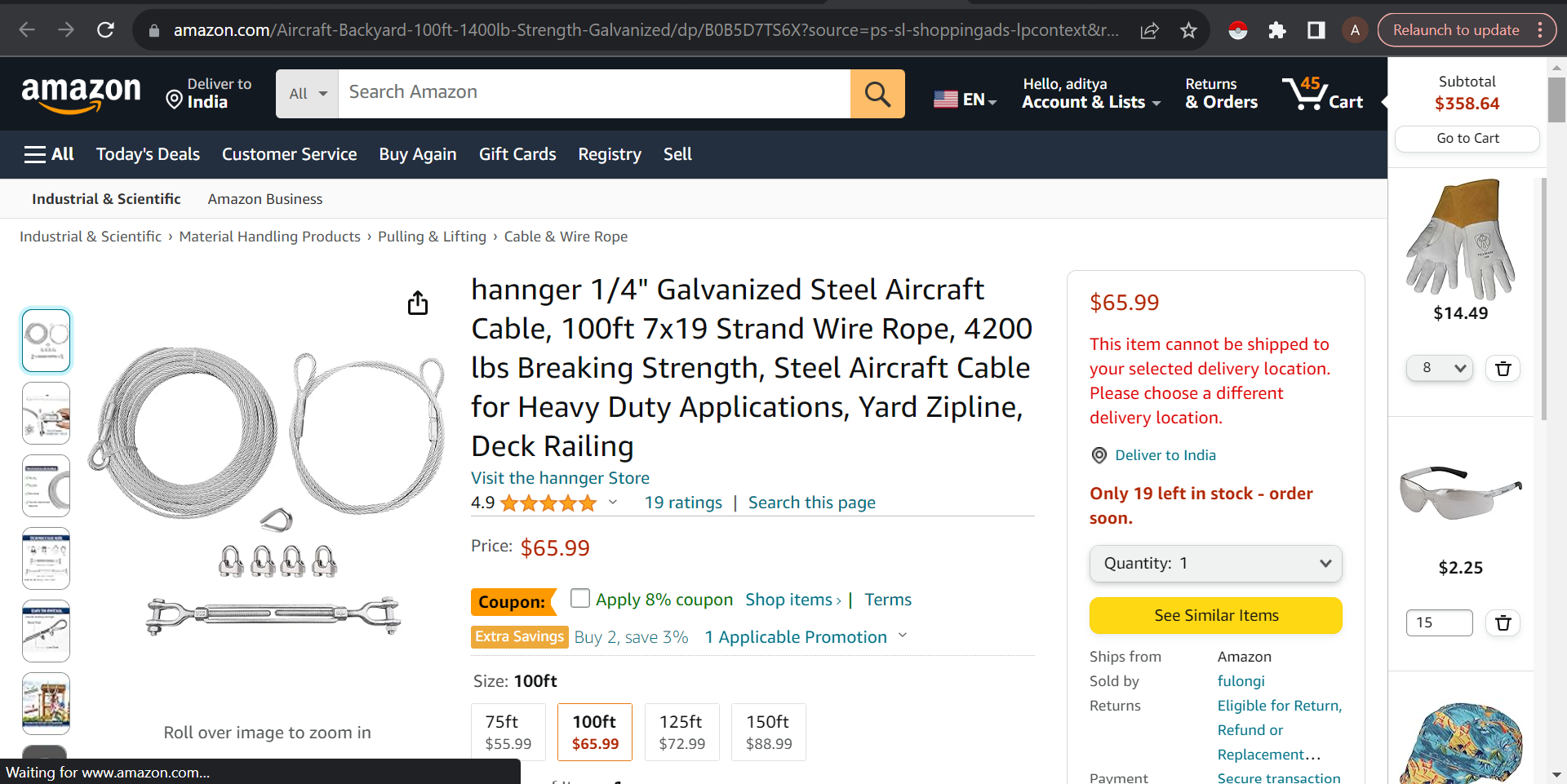 1/4" Cable 100'