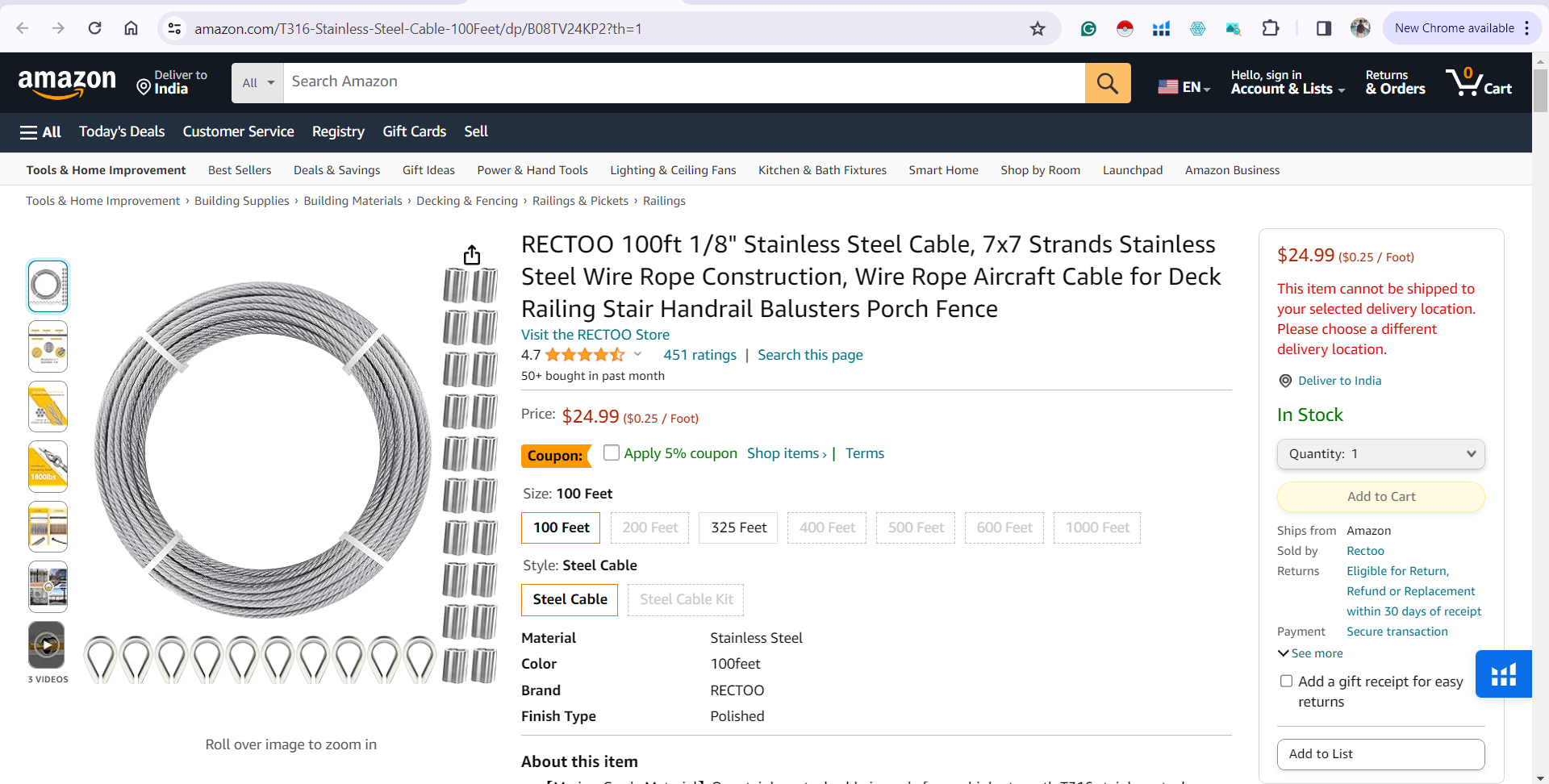 1/8" Cable 100'